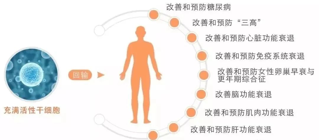 干細胞再生醫學讓我們年輕的機體永葆青春,能夠修復受損的器官、組織,有平衡免疫能力、抗腫瘤、全身抗衰老、女性卵巢抗衰、改善肝功能、心腦血管退化、糖尿病、老年癡呆等作用。